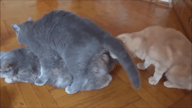 甚至还有不少小公猫对把母猫撂在一边,只想跟其他小公猫嬉♂戏的例子: