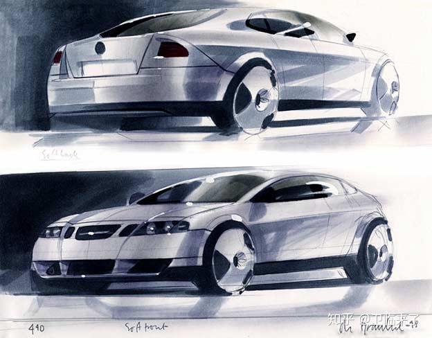 下图为9-3NG车型初版设计。可以看到Saab经典的进气隔栅,溜背造型(Combi)三幅Aero轮毂等。