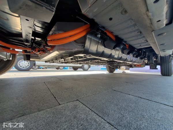 海豚EV是后置后驱结构,一体化电驱动桥,电机集成在车桥上,电机峰值功率82马力,峰值扭矩230Nm,前独立悬架,后整体桥钢板悬架,悬架的比大通EV30更粗壮。