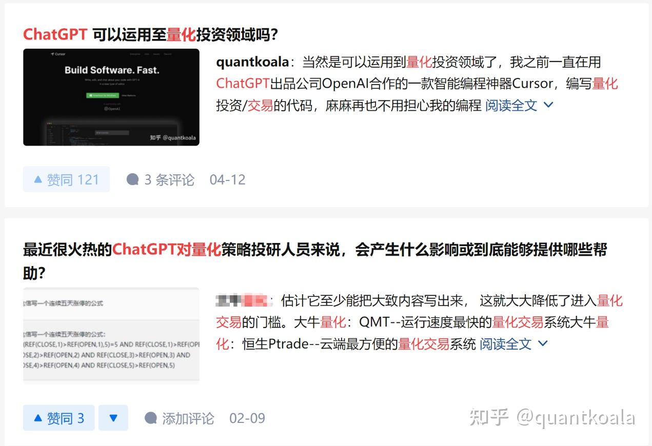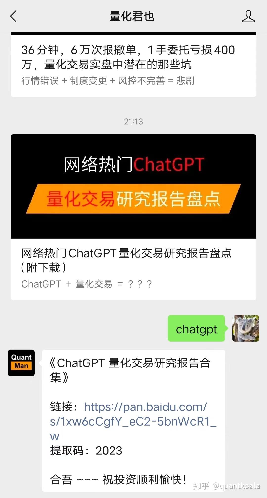 ChatGPT自诞生以来,有着横扫一切行业的态势,量化交易行业也不例外。现在上知乎问答一看啊,就经常能看到这样的问题,ChatGPT可以运用至量化投资领域吗?最近很火热的ChatGPT对量化策略投研人员来说,会产生什么样的影响或到底能够提供什么样的帮助?