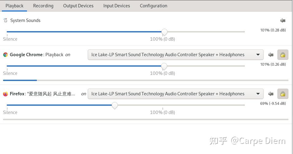 因为上次离奇的自己好了,我就没有再管了,但是后来使用chrome的时候还是没有声音,我就用了图形化界面pavucontrol,设置了播放的声道就好了。