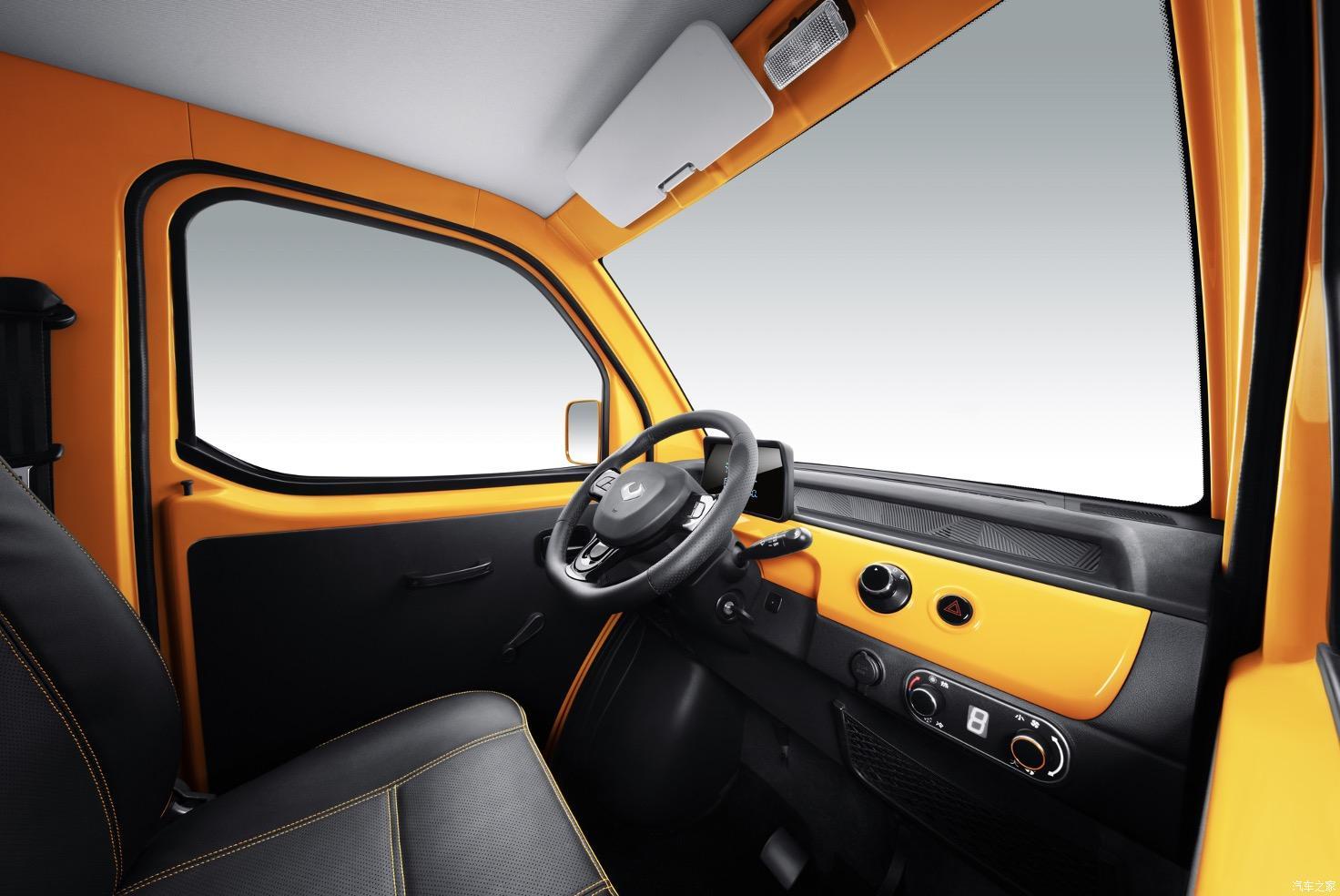 内饰方面,大力牛魔王01采用与车身同色的装饰,车内搭载高智能芯片、可选装无线蓝牙、高清液晶仪表、配有冷暖空调。拥有有1.8立方米货厢容积,单趟派件可达约100件。不仅如此,新车标配ABS+EBD,且车辆防水标准达到IP67级。