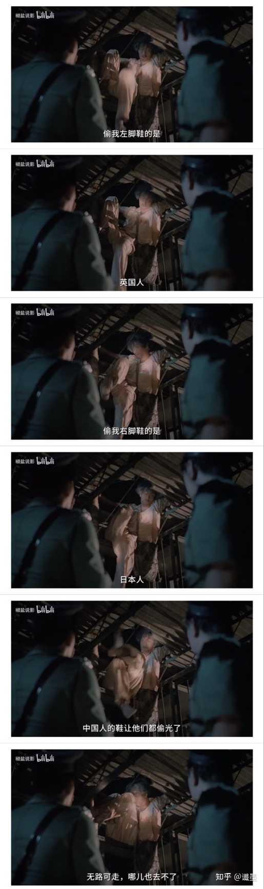 剧中的十三郎是一个编剧,最终沦落为乞丐,当警察找到他的时候,他笑着流着泪高呼,我左脚的鞋子是英国人偷了,右脚鞋子被日本人偷了。