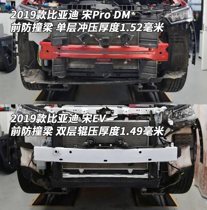 如今,在长安、吉利、奇瑞纷纷采用更高级的铝合金防撞梁,而这辆宋Pro还在使用前后单层冲压钢板,而且之前拆过的宋都是双层辊压。