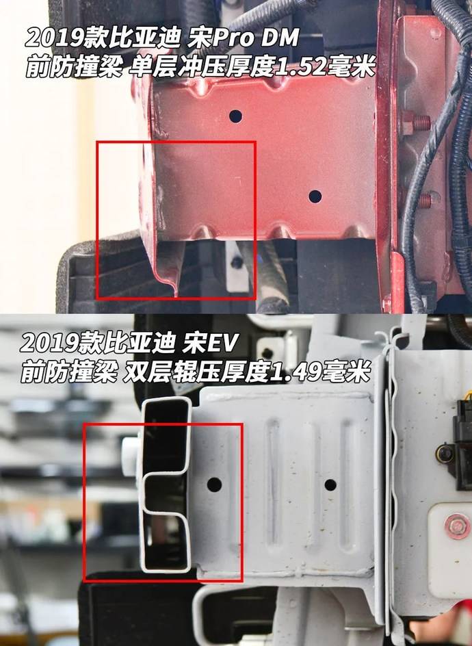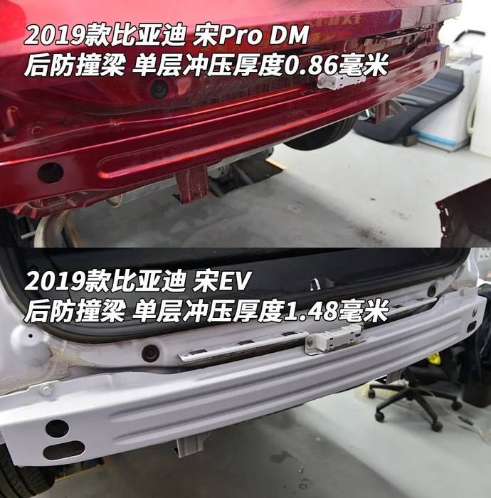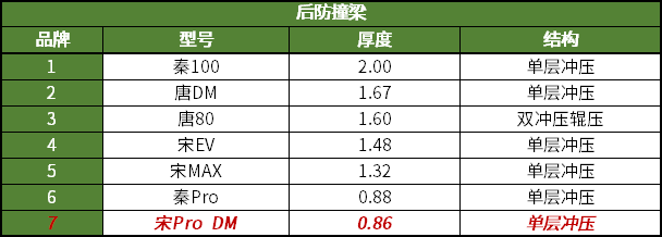 相比我们拆过的其他比亚迪车型,只有秦Pro的后防撞梁钢板厚度与这辆宋Pro相当,都比其他车型薄。不知道这个“Pro”是啥意思?