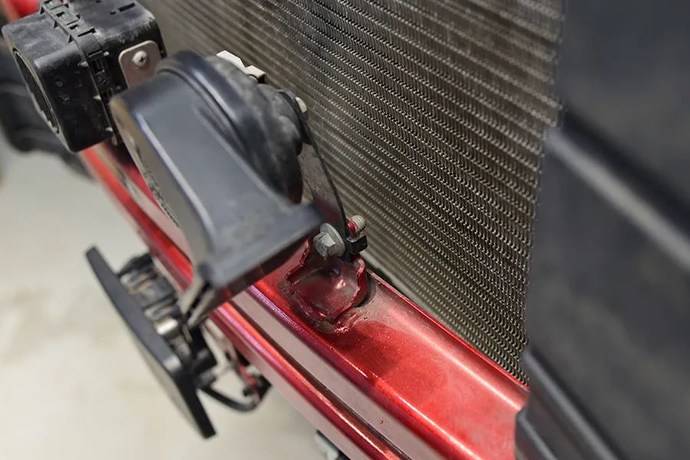 多层散热器的叠加不仅影响整体散热效果,而且与防撞梁之间的距离过近,几乎没有太多的缓冲空间。如果发生低速碰撞,散热器受损伤的几率比较高。