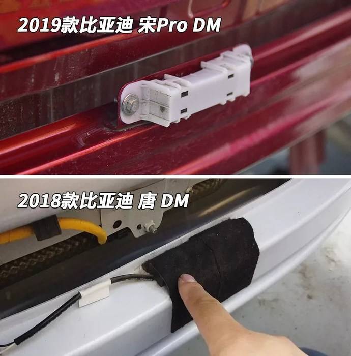 我们之前拆唐二代DM的时候,发现后尾箱钥匙传感器是用胶布粘的,当时有不少“网友”留言,“用胶布一点问题没有,合资车也这样”。那么这辆宋Pro的后尾箱传感器,为什么就使用螺栓固定呢?谁能再给“解释解释”。