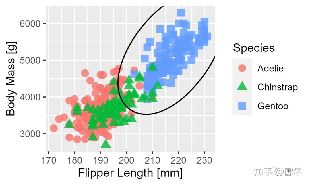 p1 <- ggplot(na.omit(penguins), aes(x = flipper_length_mm, y = body_mass_g)) +