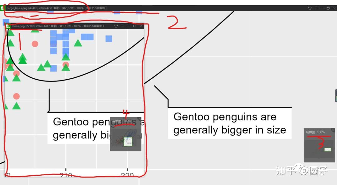图1(也就是左边小的),图2 (也就是下面大的)。我将这两个照片都缩放到100%,会发现,输出的文本果然都是一样大的。阅读我的推文的也可以尝试运行,然后都将两个照片放缩到100%。发现文本、点都是一样大的。