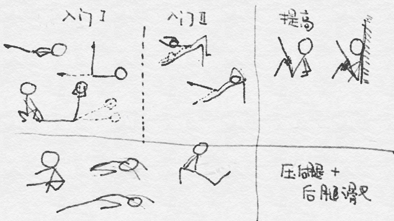 想要控腿高度有所提高的,请做黑白图片那些,结束之后可以用压后腿+后腿滑叉用来拉伸髂腰肌。