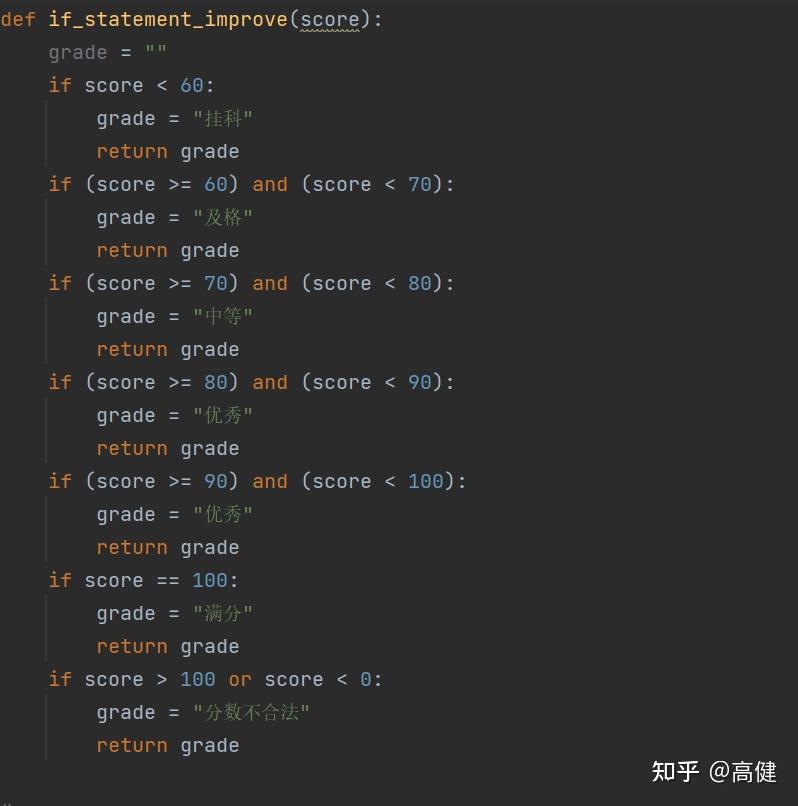 - 使用多个if语句会降低程序性能,即使条件不成立,也需要执行每个if语句,导致效率低下。此外,程序员容易遗漏某些条件,如在写这段代码时,我就未检查大于100或小于0的情况。