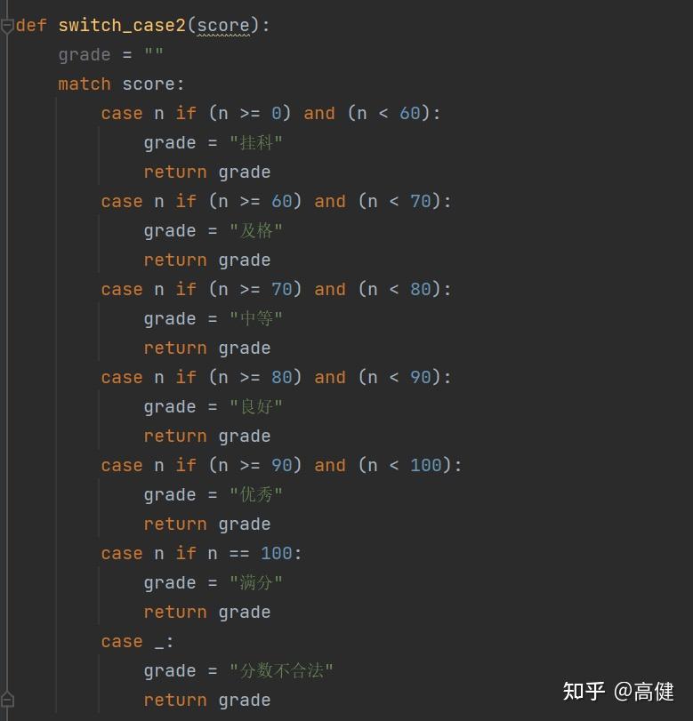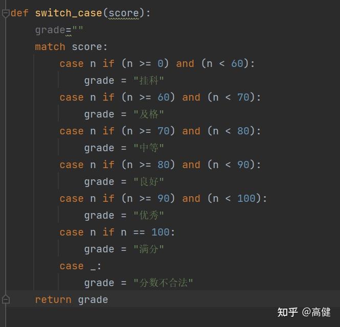 按照语法来说,严格点说,应该是Match case,和其他静态语言不一样的是,Python保留了一贯简洁的风格,Match case里默认标识break,如果不习惯,可以增加return进行标识和优化。