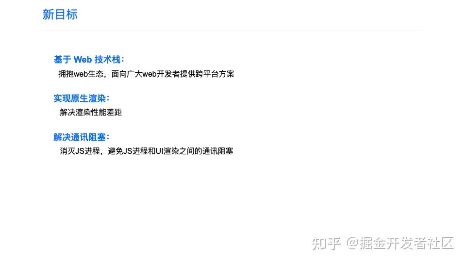 - 消灭 JS 进程,使视图和逻辑在同一线程,避免通信阻塞。