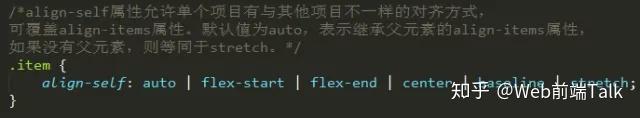 该属性可能取6个值,除了auto,其他都与align-items属性完全一致。