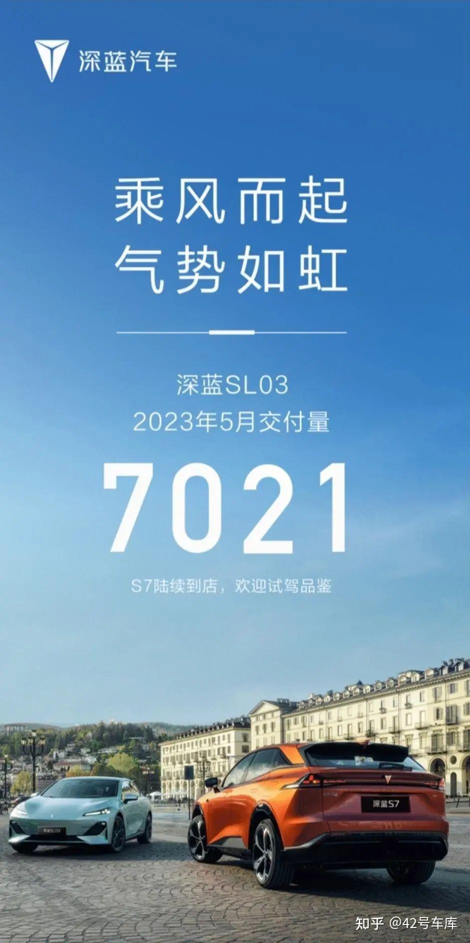 5 月,深蓝SL03 交付 7,021 台,环比降 9.5%,2023 年前 4 个月均交付量 6,717 台。