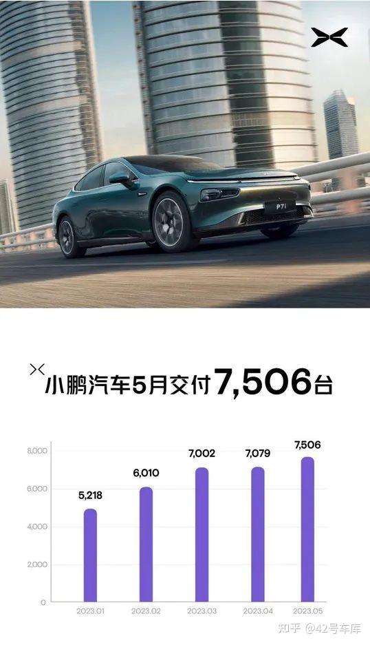 小鹏汽车 5 月交付量为 7506 台,环比增长 6%。今年以来,小鹏的月交付量在逐月提升,P7i 的交付量也环比大幅增长。