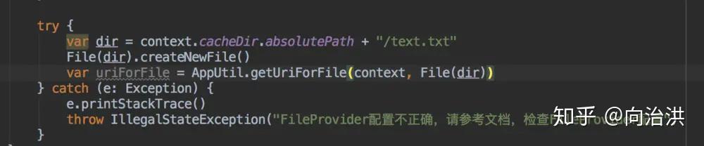 在上面的代码中,我们可以在sdk初始化的时候去私有目录创建一个空文件,然后通过 getUriFormFile 方法触发FileProvider获取url的逻辑,如果有异常则说明FileProvider配置不对,直接给出错误信息。
