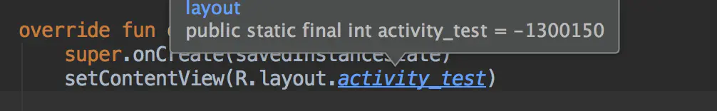 我们打开源代码文件,然后将鼠标放到R.layout.activity_test上,如下图所示。