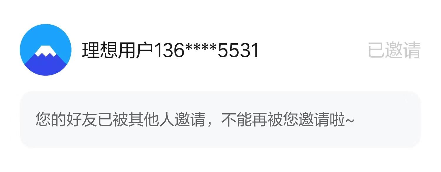 邀请成功时,邀请人和受邀人都会收到APP提醒和通知。邀请关系一旦成功建立,直至受邀人定单交付、即邀请结束,邀请人信息无法被再次修改。如果您未收到提醒,可能是好友未填写并提交信息,或者此次邀请无效。发生无效邀请时,邀请人可在“我的邀请”中查看具体原因,例如下图:
