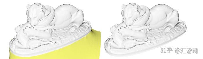 泊松重构更具技术性/数学性。它的方法被称为隐式网格划分方法,我将其描述为试图将数据“包裹”在光滑的布料中。在不涉及太多细节的情况下,我们尝试通过创建一个代表与法线链接的等值面的全新点集来拟合原始点集的防水表面。有几个可用的参数会影响网格划分的结果: