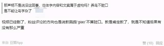 视频一出,胡先煦立刻招来了一片骂声。虽然说这个鸟儿脏口儿了就会被摔死的说法不确定真假,但脏口儿了肯定不值钱了是真的。