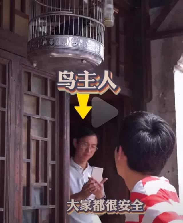 另外,鸟儿的主人也在旁边,胡先煦跟对方打了招呼,鸟主人看着胡先煦逗鸟还露出了姨母笑。整个气氛非常和谐欢乐。