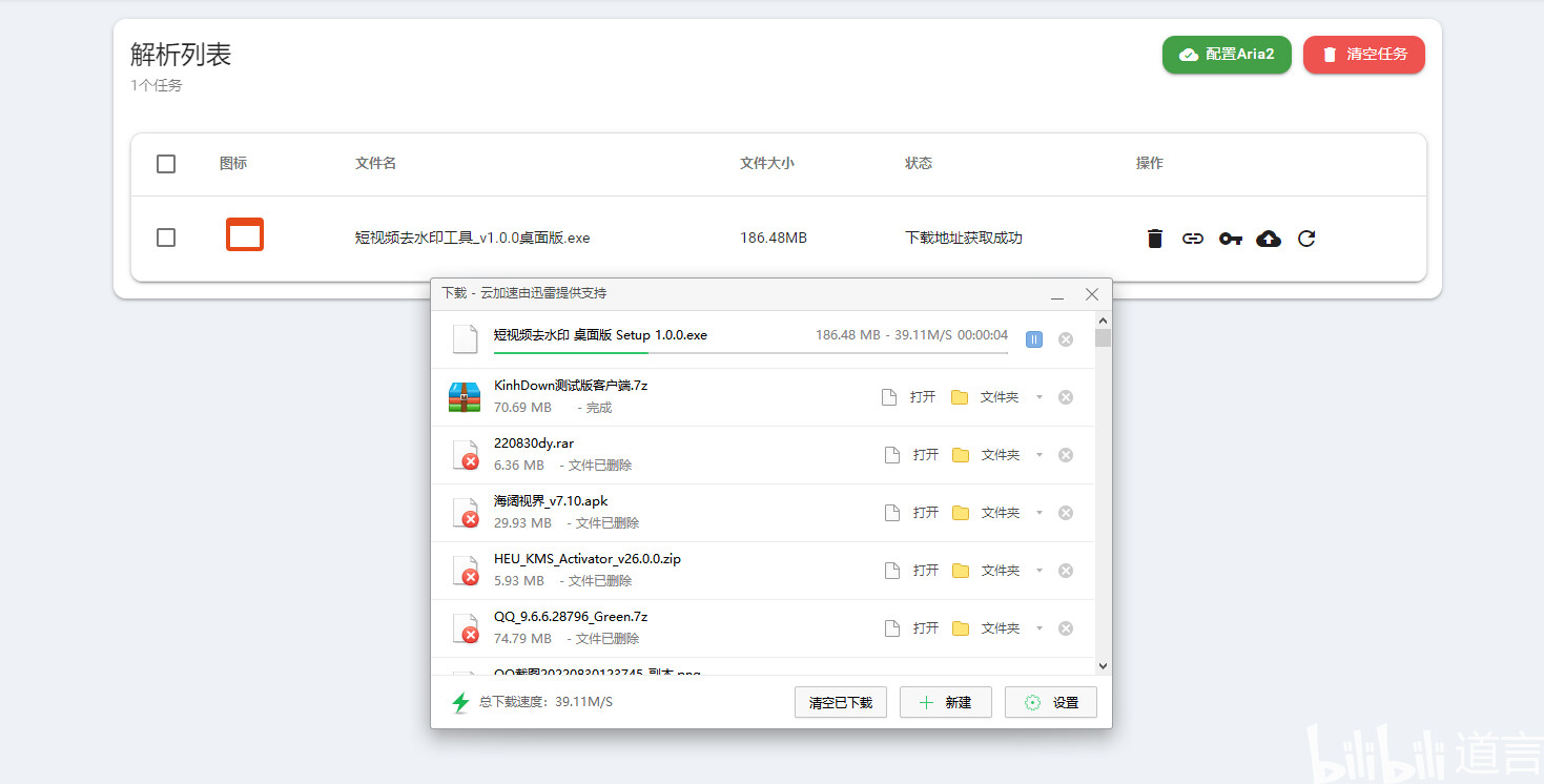 3、解析后点击弹窗的查看解析列表或点击右边下载按钮