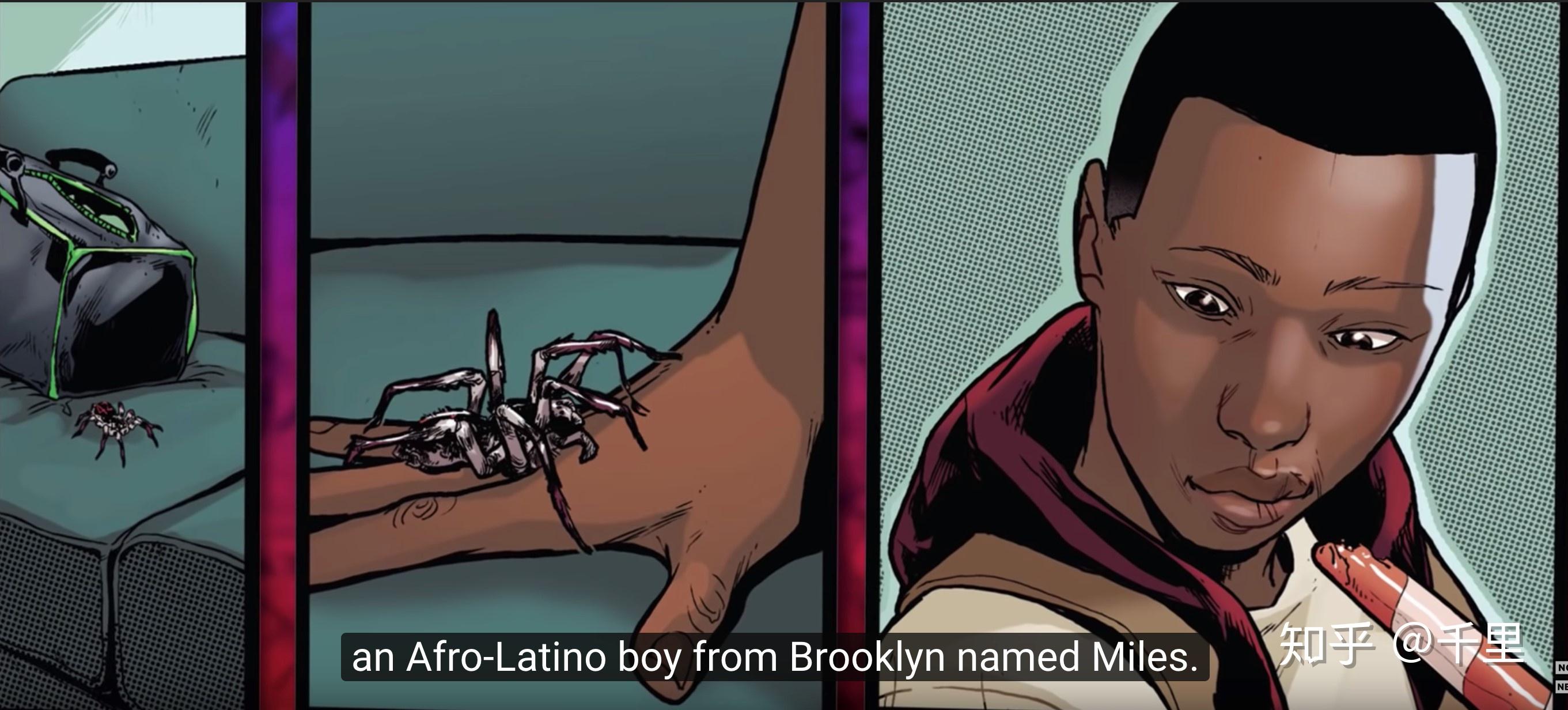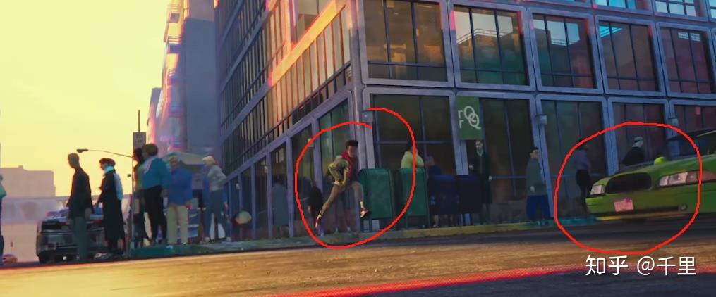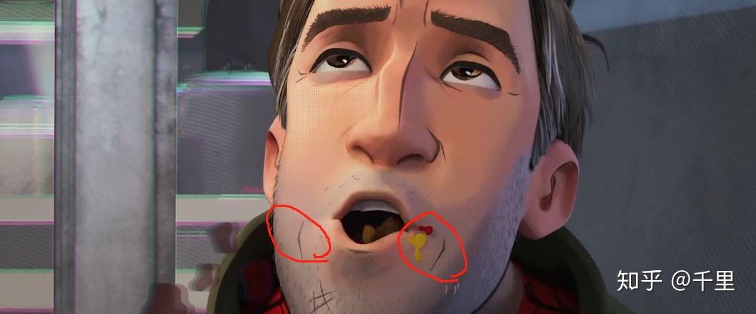 迈尔斯和蜘蛛侠本体都用了美漫风,下文会具体讲到,简言之就是虽然整体是3d模型,但面部有明显漫画式勾线,光线硬朗,色彩分明。