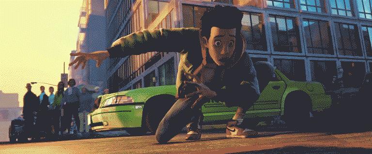 平行宇宙中,强烈的硬光给人一种独特的简约感,光线对比极其强烈,色彩也比传统3d动画剧烈的多
