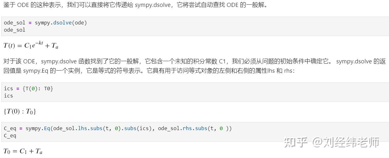 求解常微分方程有符号方法和数值方法,这里探讨符号方法,对于符号方法,我们使用 sympy 模块。