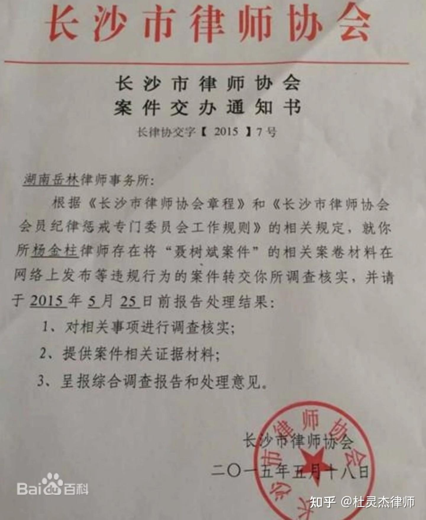 后于2018年6月6日,湖南省司法厅经集体研究,认为湖南岳林律师事务所律师杨金柱违法性质、情节恶劣,严重损害律师行业形象,造成恶劣社会影响,决定吊销杨金柱律师执业证书。