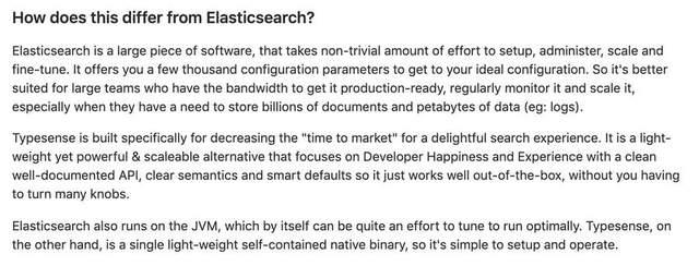 typesense 开箱即用,二进制直接搭建,对于数据量适中(不到亿级数据)的项目来说是非常好的轻量化选择。