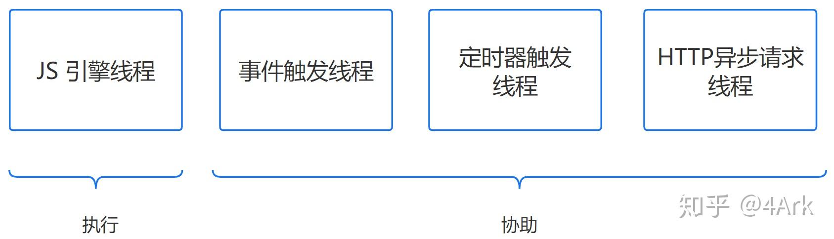 其中三个只是协助,只有 JS 引擎线程是真正执行的