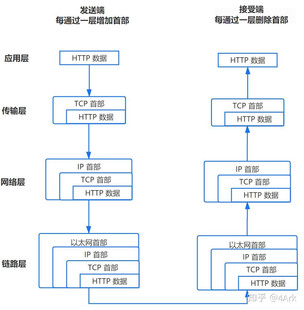 TCP/IP 分为四层,在发送数据时,每层都要对数据进行封装: