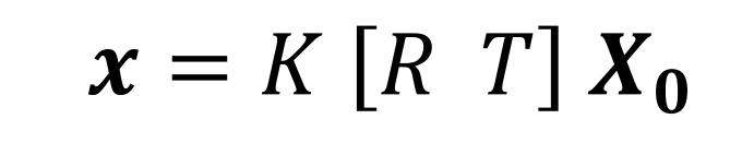 假设以车辆中心为原点,世界坐标系中某一个点x0=[X, Y, Z, 1]T在图像上的投影点为x=[x, y, 1]T。则他们满足成像方程:
