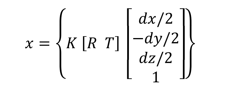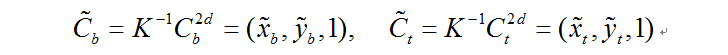 第二步, 在得到方位角和物体尺寸之后,利用成像公式,计算中心点向量T = [tx,ty ,tz]T。
