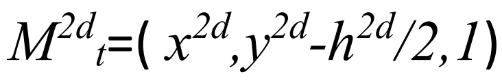 这里x和z是中心位置的x和z坐标值。因此,现在的问题是如何估计中心位置Cb的值。这里假设3D车辆顶面的中心投影在2D图像上为2D检测框的上边中点;3D车辆底面的中心投影到2D图像上为2D检测框的下边中点。可以根据这个假设,粗略的估计3D车辆的中心位置。若图像中2D框为