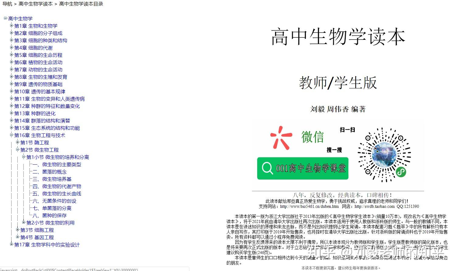 《高中生物学读本》(教师版)最新目录和最新全文浏览