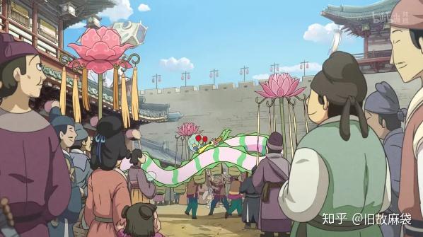 画风是盛唐风,两个字:新鲜!我们看过不少动漫的画风,盛唐风也偶有看到,但如此到位的还是第一次,从建筑到服饰到纹路都极为考究。片头繁华的街景、忙碌的人群、庄严的塑像、女王的裙角、幽暗的地牢,盛世唐朝渲染到位。片尾有场景如何制作的还原,真的是辛苦工作人员了,满满的不容易啊!