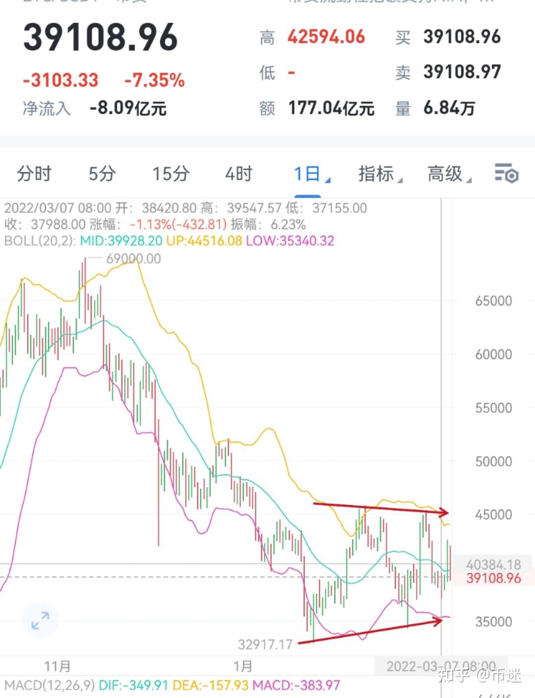 投资笔记分享—加密货币行情观察20220310——震荡幅度在逐渐缩小,耐心等待变盘!