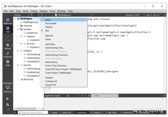 14.我们已经完成了自定义小部件的创建过程。让我们运行qmake并在发布模式下构建库。右键单击项目并单击Build选项,如下面的屏幕截图所示。该项目将在几秒钟内构建完成,并将在内部发布文件夹中提供。在Windows平台上,可以手动复制mywidgetcollectionplugin.dll将插件库创建到d:\Qt\6.0.0\mingw81_64\plugins\designer路径。对于不同的操作系统,此路径和扩展名会有所不同: