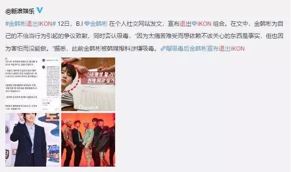韩国团体偶像最近似乎集体到了“水逆期”。永久退出SJ组合,否则将无限期抵制SJ所有活动;9天后的6月12日,知名经纪公司YG旗下男团iKON成员金韩彬(B.I)被曝涉嫌吸食大麻,随后金韩彬发布声明否认吸毒,但感到“惭愧和对不起大家”,跟粉丝道歉之后退出iKON组合。