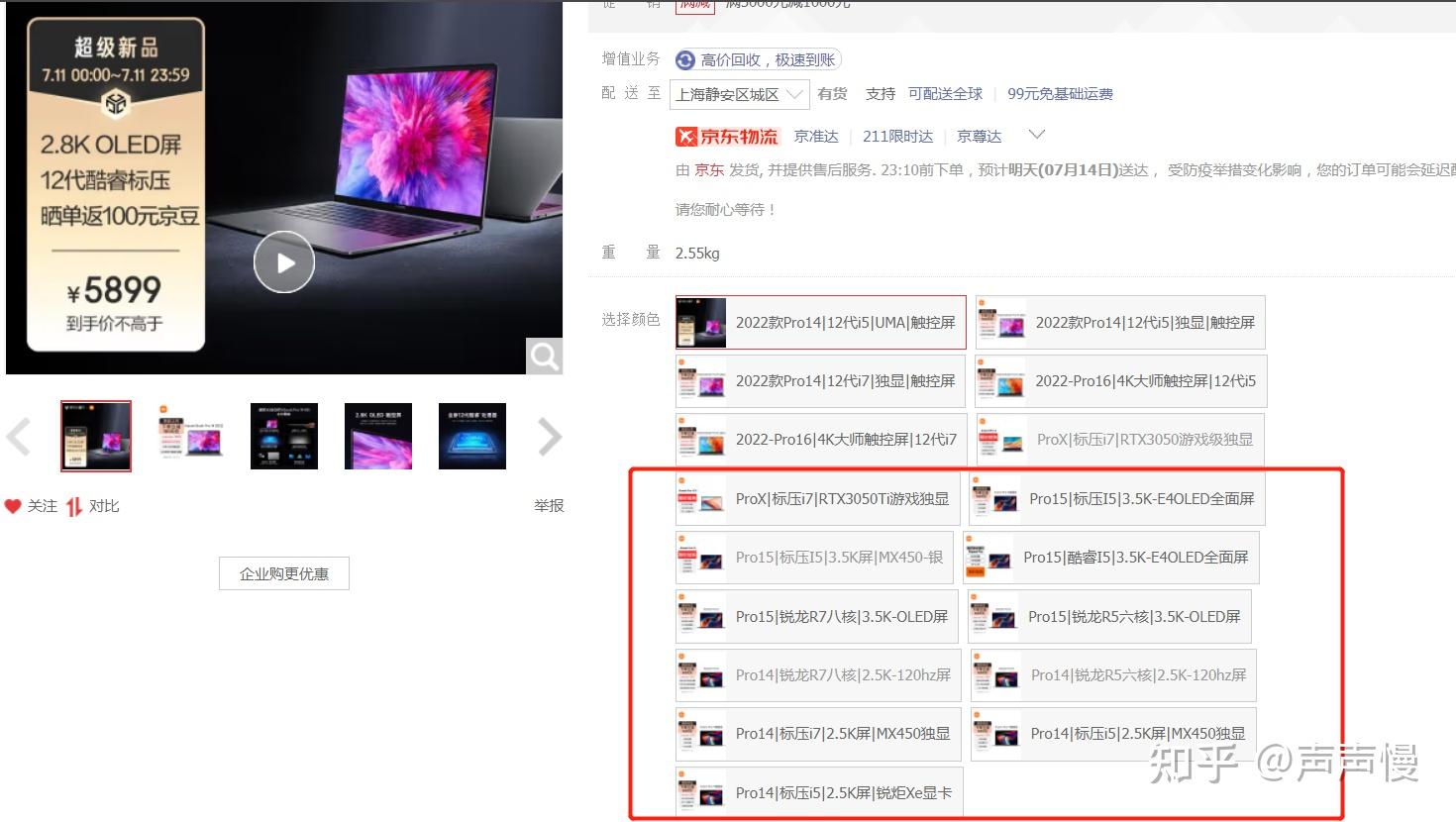 | 显示屏 | 14寸,2.8K分辨率100% DIP-p3,120Hz刷新率,对比度极高; | 这个屏幕是小米宣传重点,但主要优缺点开头讲过了,大家自己斟酌。 |
