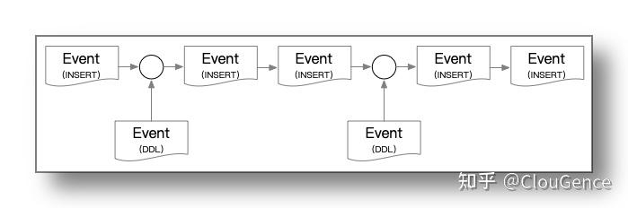 的思想将 DDL 事件插入到正常的 DML 事件序列中去,原理如下图: