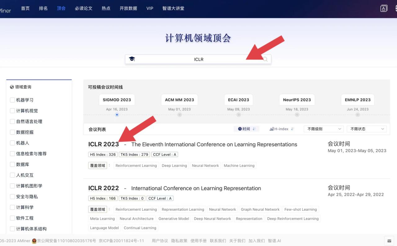 第二步:在搜索栏中输入「ICLR」,之后点击「ICLR2023」