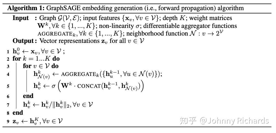 我们来看看GraphSage核心算法的过程,会发现原理上二者的惊人相似性: