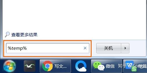 1、系统【开始菜单】-->搜索栏中输入【%temp%】回车