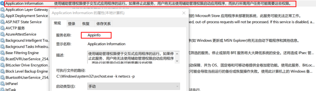 其实我们在服务中也可以看到appinfo的服务,对应的描述和UAC的实现非常类似。